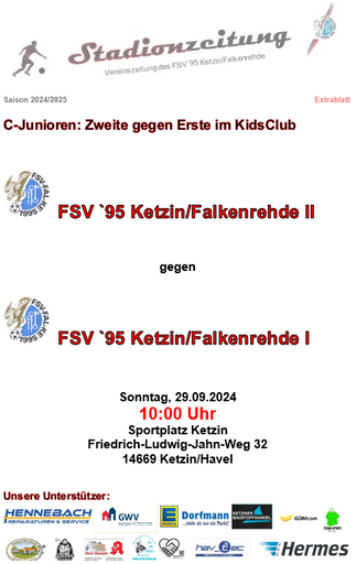 Ü40, 1. Herren und C-Junioren-DERBY zu Hause, E- und B-Junioren auswärtsfsv95fal-ke27. Sept. 20241 Min. Lesezeitund am Donnerstag 1. Pokalspiel der 1. Männer in RuhlsdorfHeimspiele am Wochende:Auswärtsspiele am Wochende und kommende Woche:
